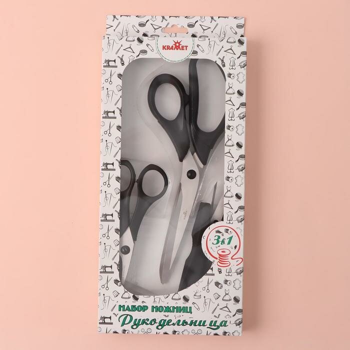 Отзывы на Набор ножниц: портновские 23 см, универсальные 13,2 см, для обрезки ниток 12,7 см, цвет черный./В упаковке шт: 1