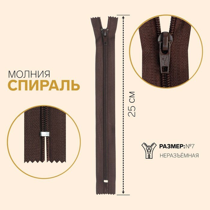 Молния "Спираль", №7, неразъемная, 25 см, цвет шоколадный./В упаковке шт: 10 информация: