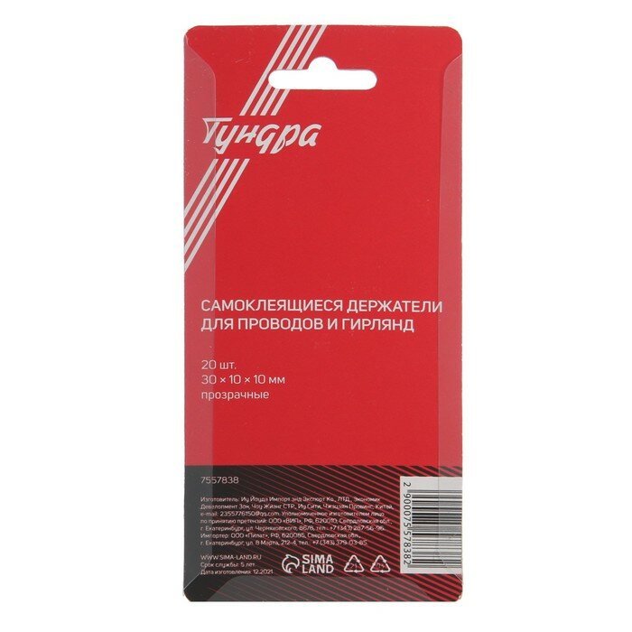 Держатель самоклеящийся для проводов и гирлянд тундра krep, прозрачный, 20 шт. информация:
