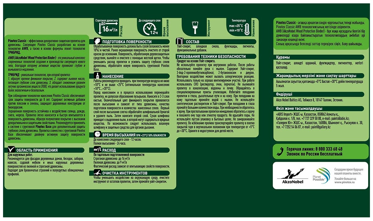 Пропитка для древесины Pinotex Classic, полуматовая (9л) сосна информация: