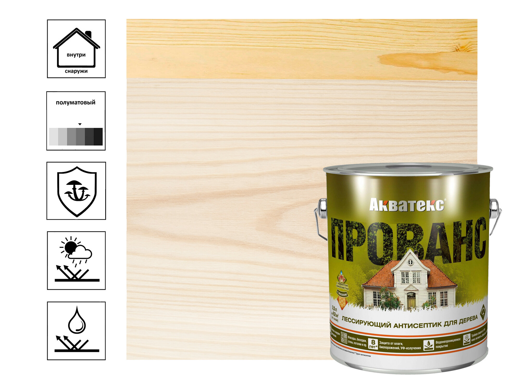 Лессирующий антисептик для древесины акватекс прованс (бесцветный / 2.5л.) информация: