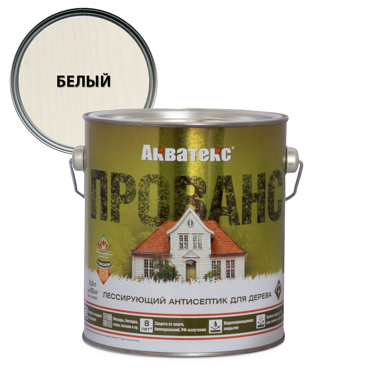 Лессирующий антисептик для древесины акватекс прованс (белый / 2.5л.) информация: