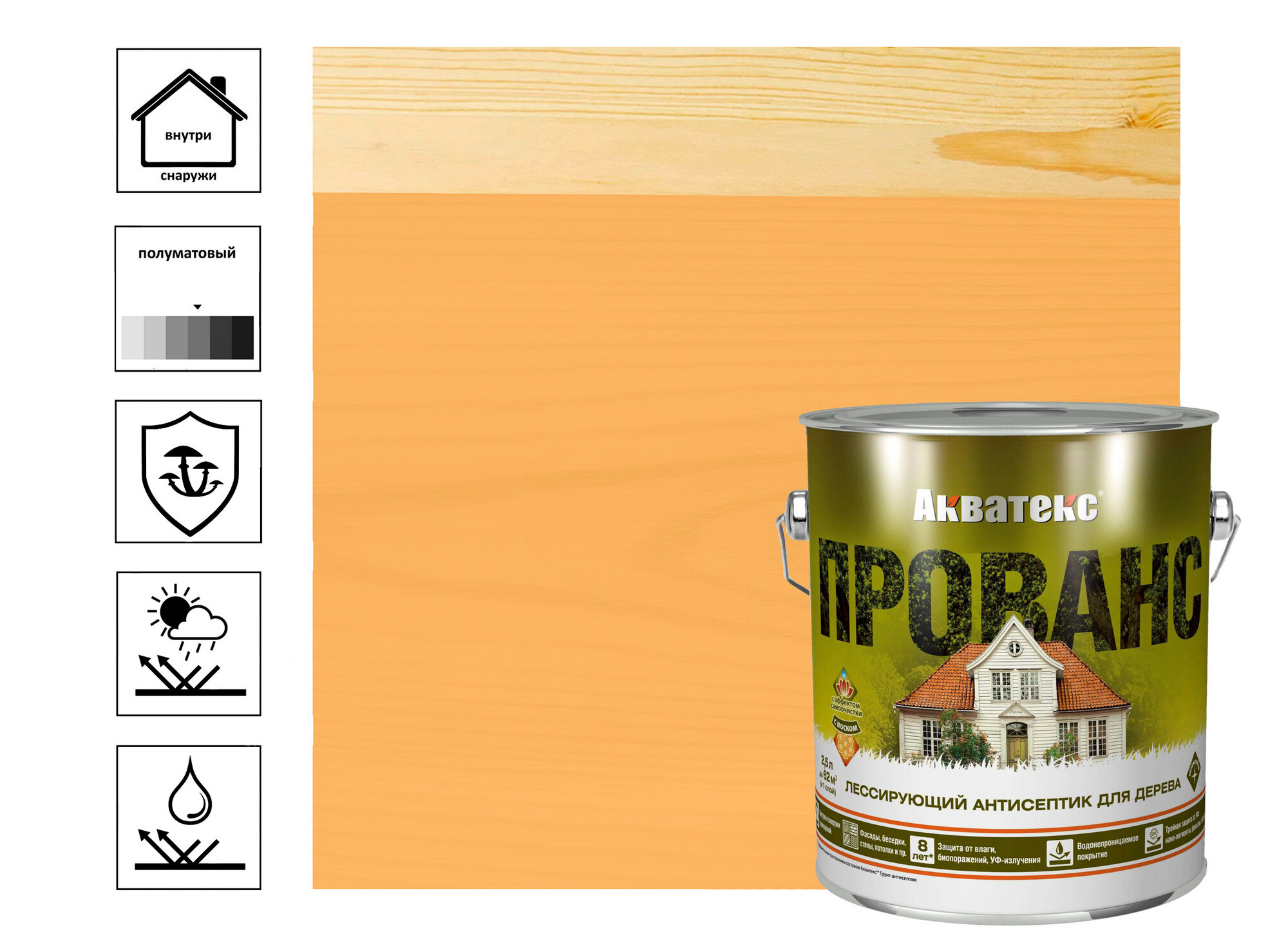 Лессирующий антисептик для древесины акватекс прованс (сосна / 2.5л.) информация: