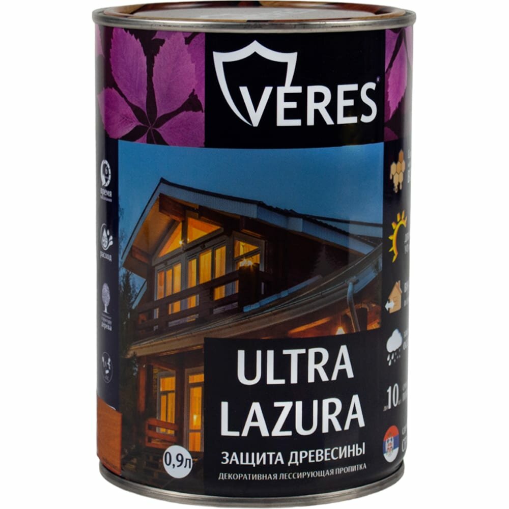 Декоративно-защитная пропитка VERES 42034 Ультра лазура № 9 палисандр 0.9 л