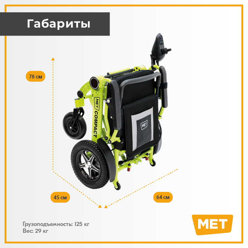 Инвалидная кресло-коляска с электроприводом MET Compact 35 (мощная малогабаритная) 124 552 ₽