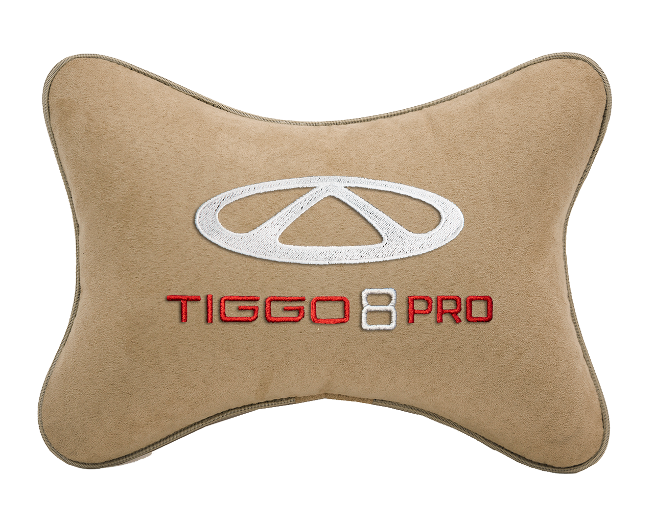 Автомобильная подушка на подголовник алькантара Beige с логотипом автомобиля CHERY Tiggo 8 PRO информация: