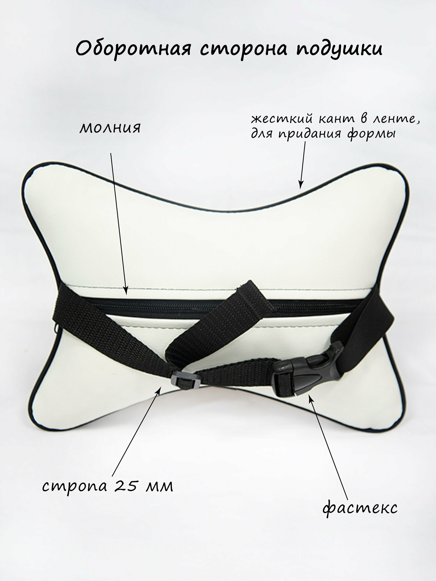 Подушка под шею с эффектом памяти для Cadillac SRX (2003-2009) / Кадилак СРХ, Экокожа, Чёрный с белым