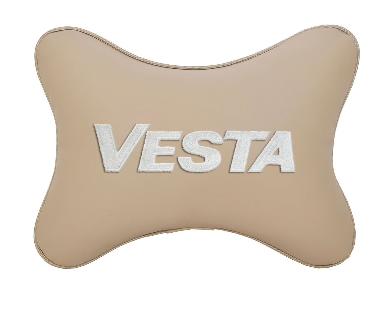 Автомобильная подушка на подголовник экокожа Beige с логотипом автомобиля LADA Vesta информация: