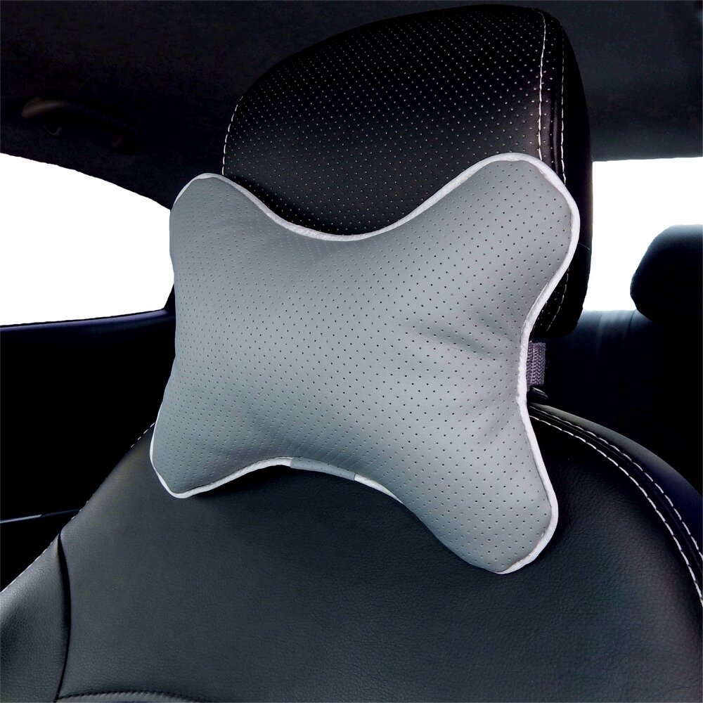 10 цен на Подушка-косточка автомобильная под шею. Маленькая. Материал: экокожа. Цвет: серый.