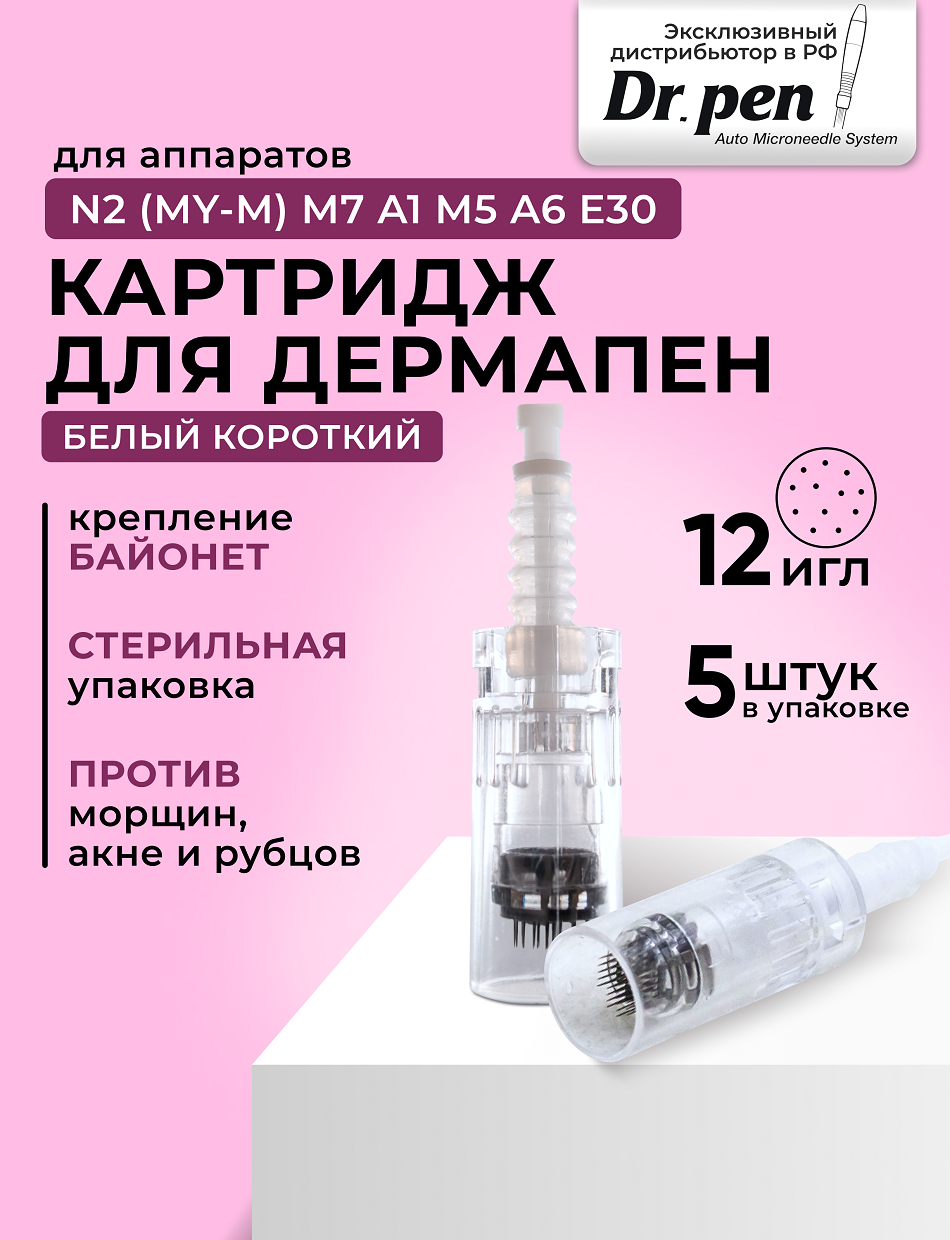 Dr.pen Картридж для дермопен мезопен / на 12 игл / насадка для аппарата dr pen / дермапен / белый байонет, 5 шт информация: