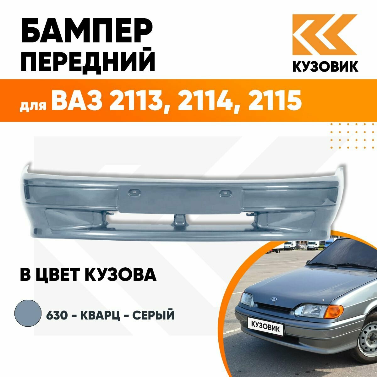 Бампер передний в цвет кузова ВАЗ 2114 2115 2113 без птф 630 - Кварц - Серый информация: