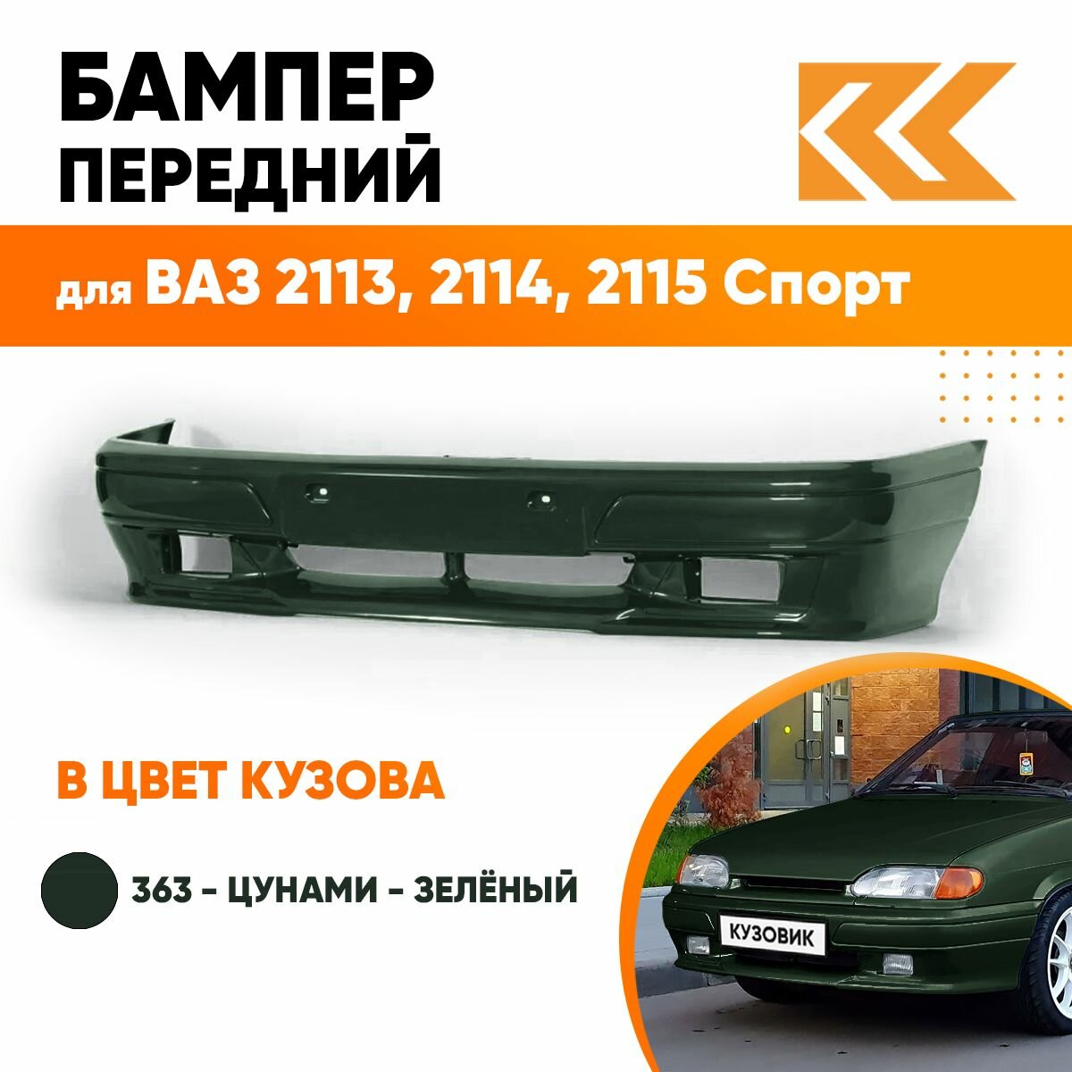 Бампер передний в цвет кузова ВАЗ 2113, 2114, 2115 спорт 363 - Цунами - Зеленый информация: