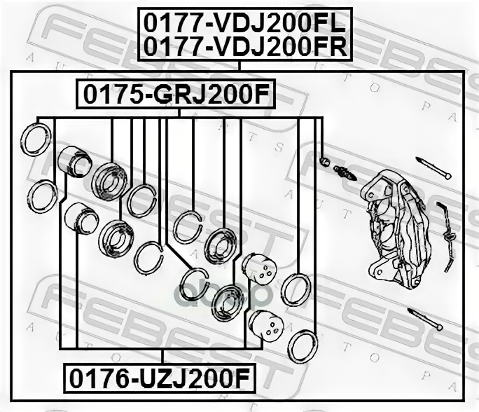 Суппорт Тормозной | Перед Лев |_Toyota Land Cruiser Urj202/Uzj200/Vdj200 2007.09- [Eu] Febest арт. 0177-VDJ200FL