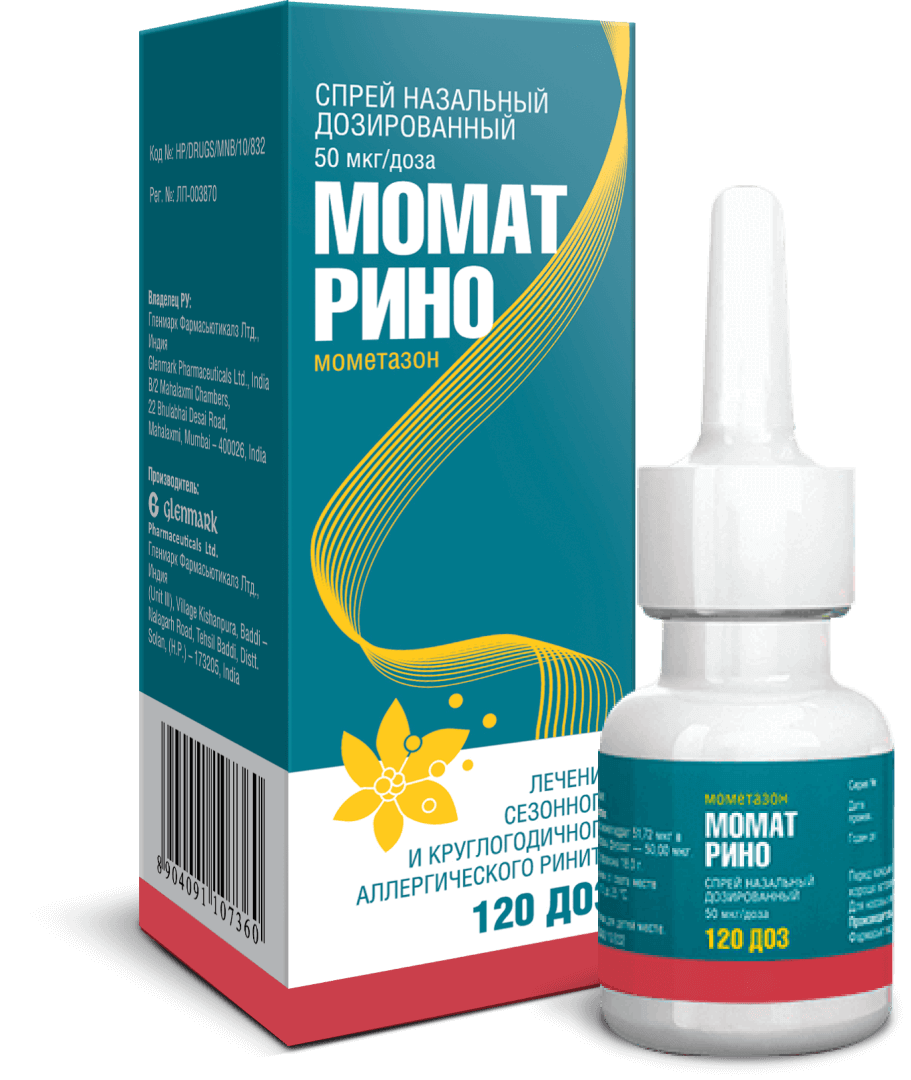 Лекарства для лечения аллергии Гленмарк Фармасьютикалз Момат Рино спрей назал дозир 50 мкг/доза 120 доз информация: