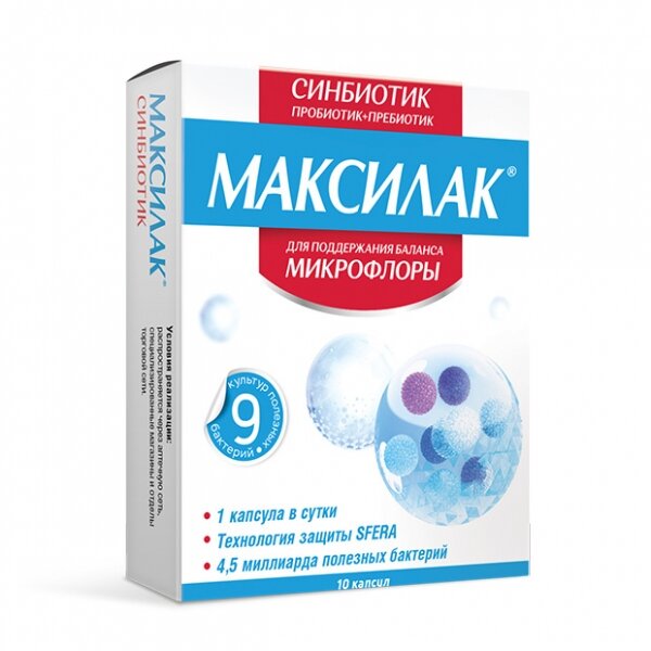 | Показания к применению | Максилак, с учетом свойств, особенно рекомендован:— в качестве профилактики кишечных расстройств при смене климата, места пребывания;— в качестве средства для нормализации микрофлоры кишечника в процессе и/или после приема препаратов, которые могут вызвать изменения качественного или количественного состава микробиоценоза ЖКТ;— в качестве вспомогательного средства при функциональных расстройствах кишечника: диарее (поносе), диспепсии (нарушении пищеварения), запоре, метеоризме (вздутии живота), тошноте, отрыжке, рвоте, боли и дискомфорте в животе и пр.;— в период сезонных всплесков инфекционных заболеваний. |
