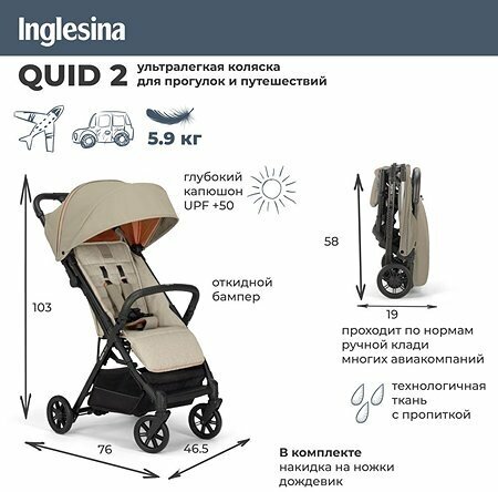 Прогулочная коляска Inglesina Quid 2, camel beige информация: