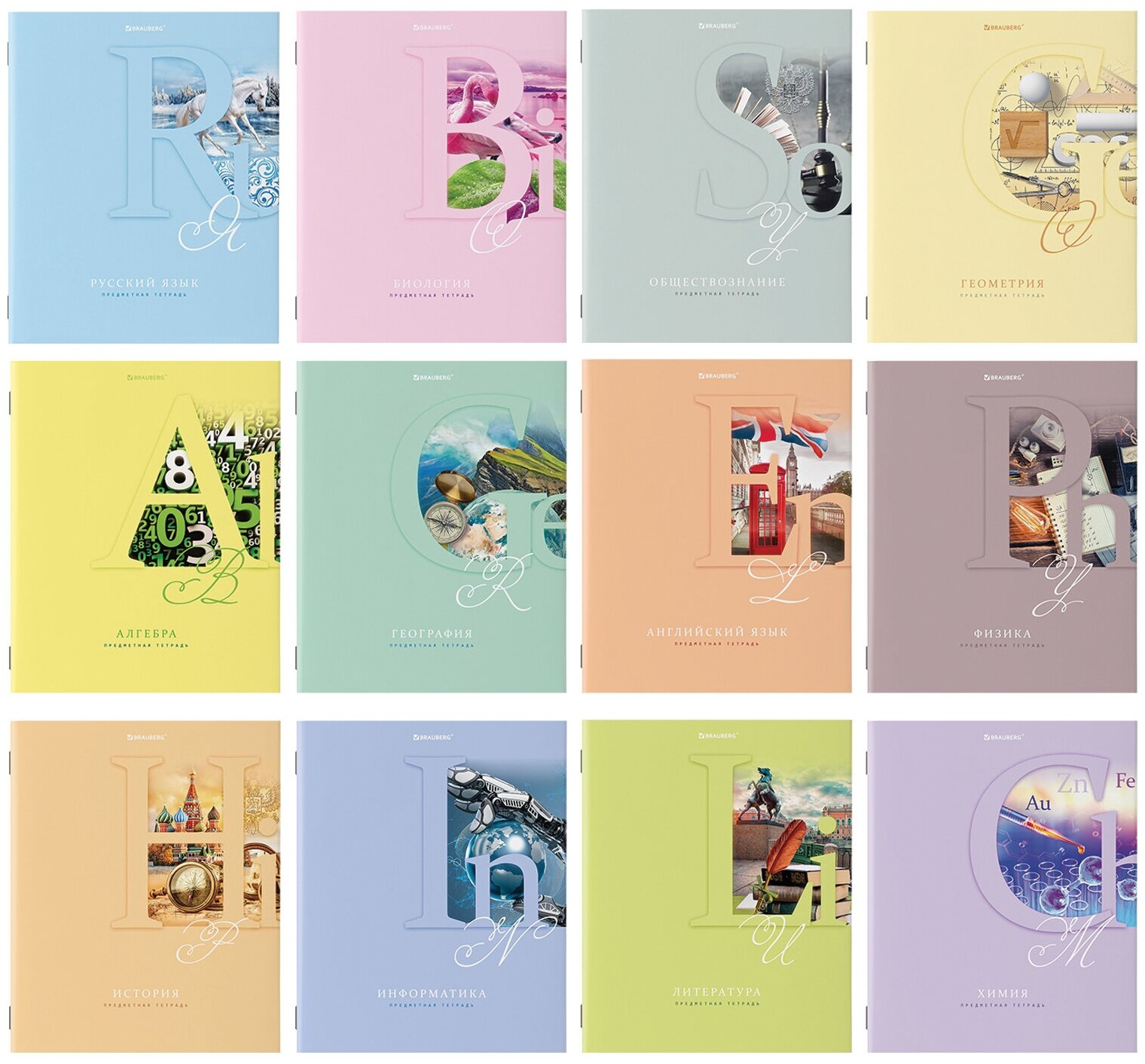 Тетради предметные, комплект 12 предметов, пастельная, 48 листов, обложка картон, BRAUBERG, 404026 информация: