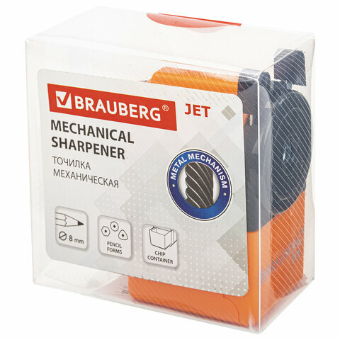 Точилка механическая BRAUBERG "JET", металлический механизм, корпус оранжевый, 229567 (цена за 1 ед.товара)