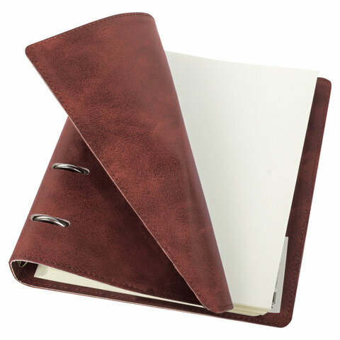 Тетрадь на кольцах Brauberg 120 листов, А5 148*218 мм "MAIN" "гладкая кожа", вырубка под кольца, коричневый (401710)