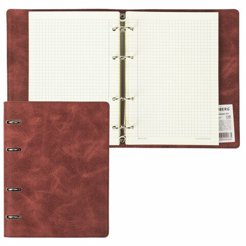 Тетрадь BRAUBERG Main на кольцах А5, 120л, кожзам, клетка, коричневый 401710