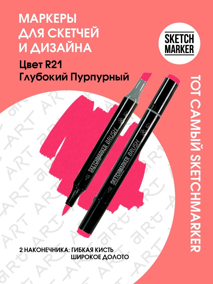 Маркер Sketchmarker Brush двухсторонний на спирт.основе цв.R21 Глубокий Пурпурный информация: