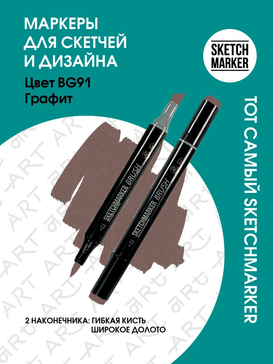 10 цен на Маркер Sketchmarker Brush двухсторонний на спирт.основе цв.BG91 Графит