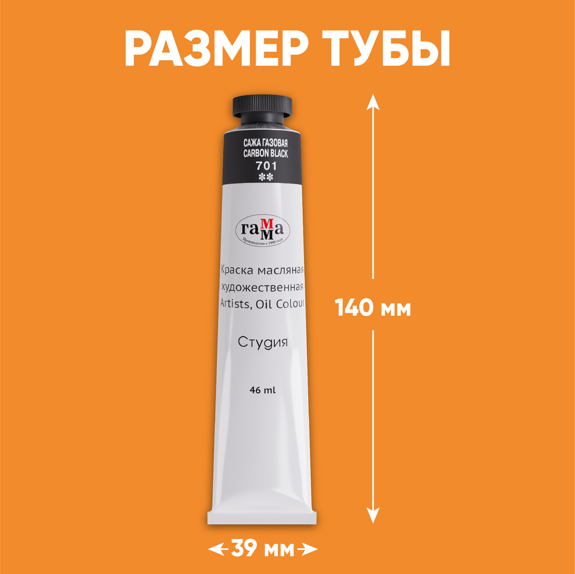 Краска масляная художественная Гамма "Студия", 46мл, туба, сажа газовая информация: