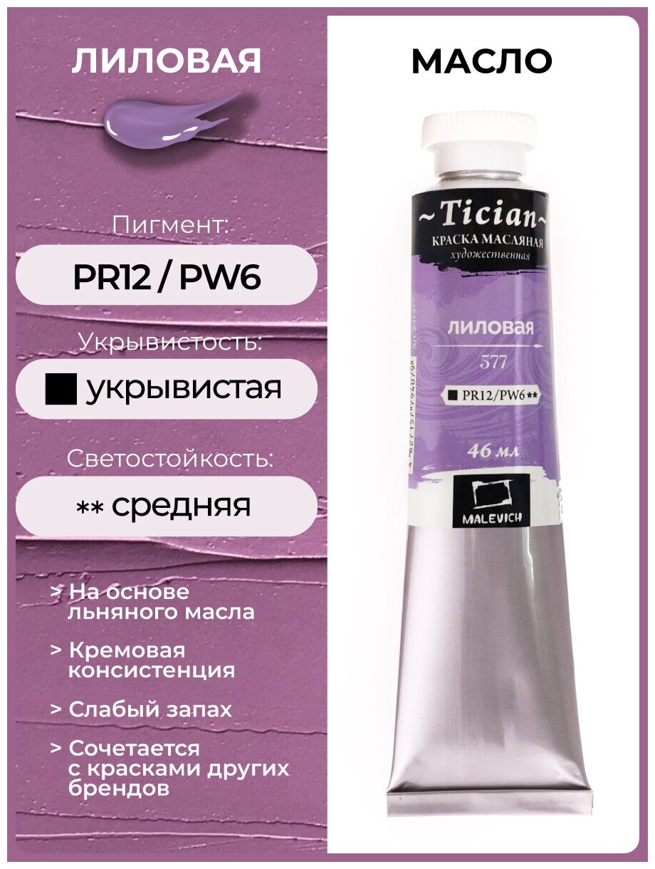 Масляные Малевичъ Масляная краска Tician малевичъ, туба 46мл, 577 Лиловая