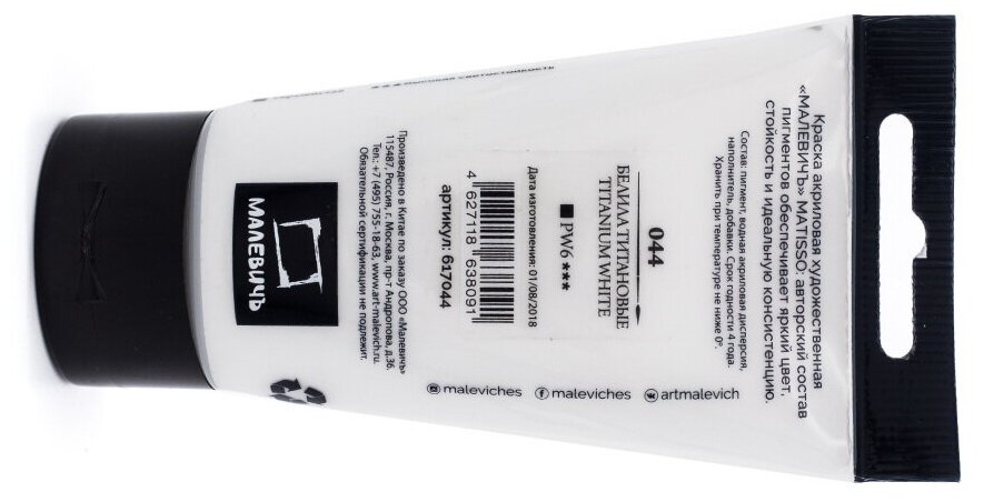 Акриловая краска Малевичъ Matisso, белила титановые, 60 мл информация: