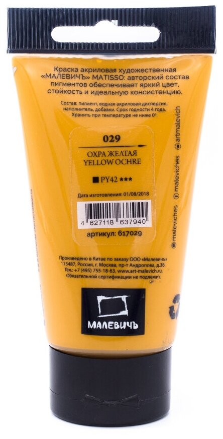 Акриловая краска Малевичъ Matisso, охра желтая, 60 мл информация:
