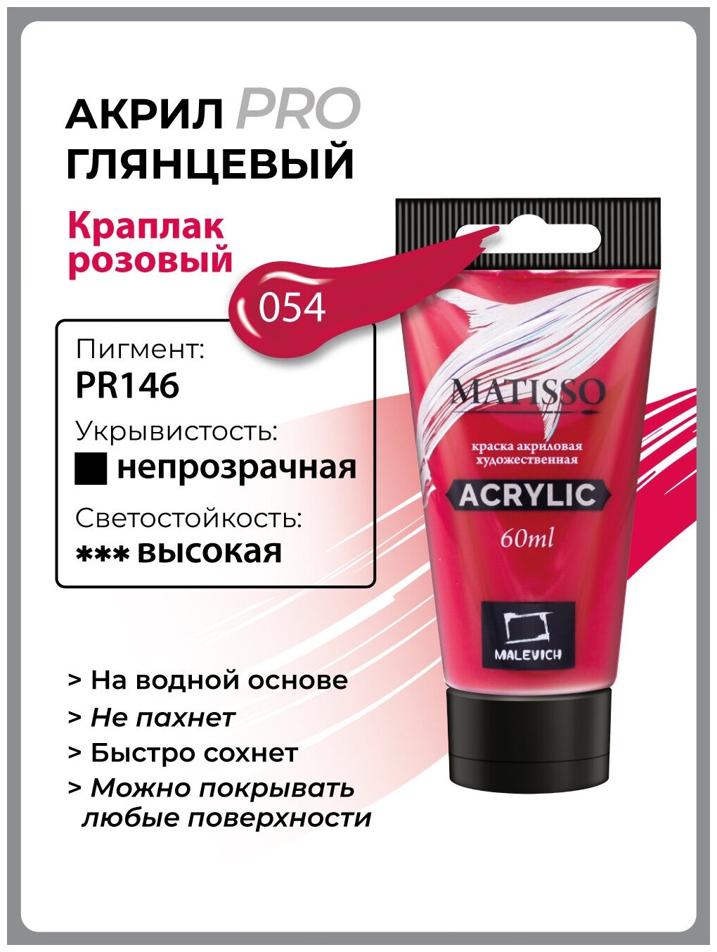 Акриловая краска Малевичъ Matisso, краплак розовый, 60 мл информация: