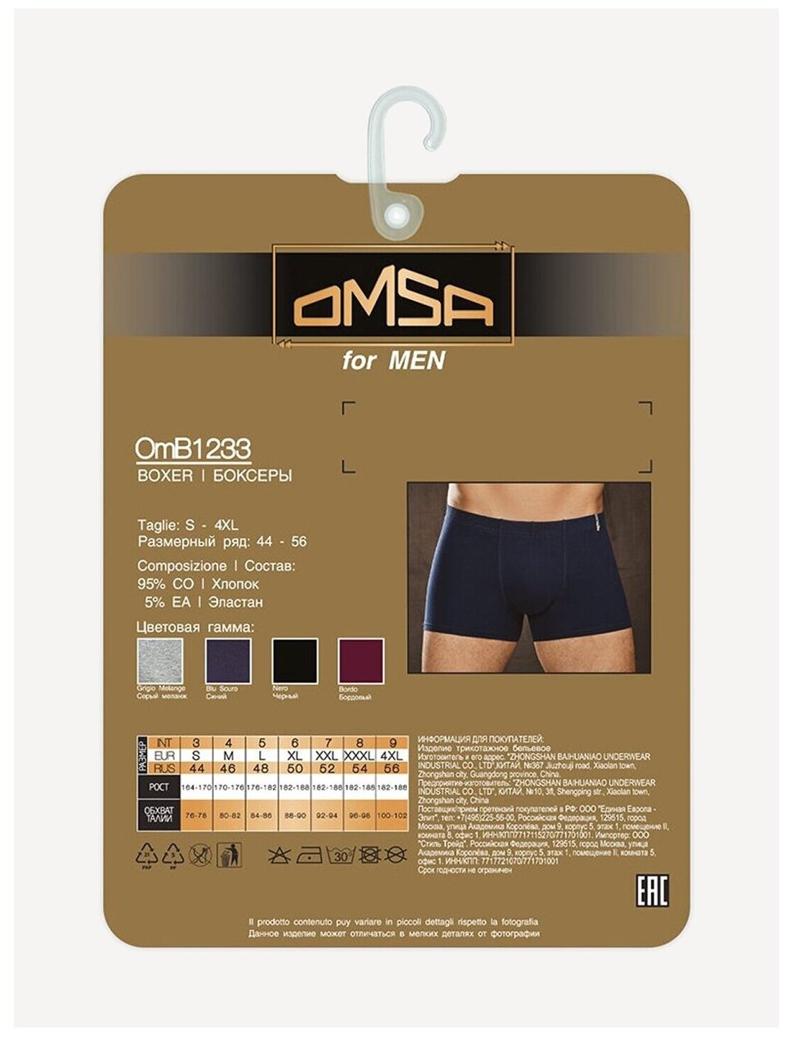 Отзывы на Однотонные мужские трусы боксеры Omsa OMB 1233, размер 44, цвет Синий