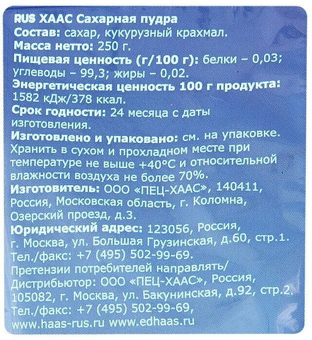 10 цен на Сахарная пудра (гост) Haas, 250г