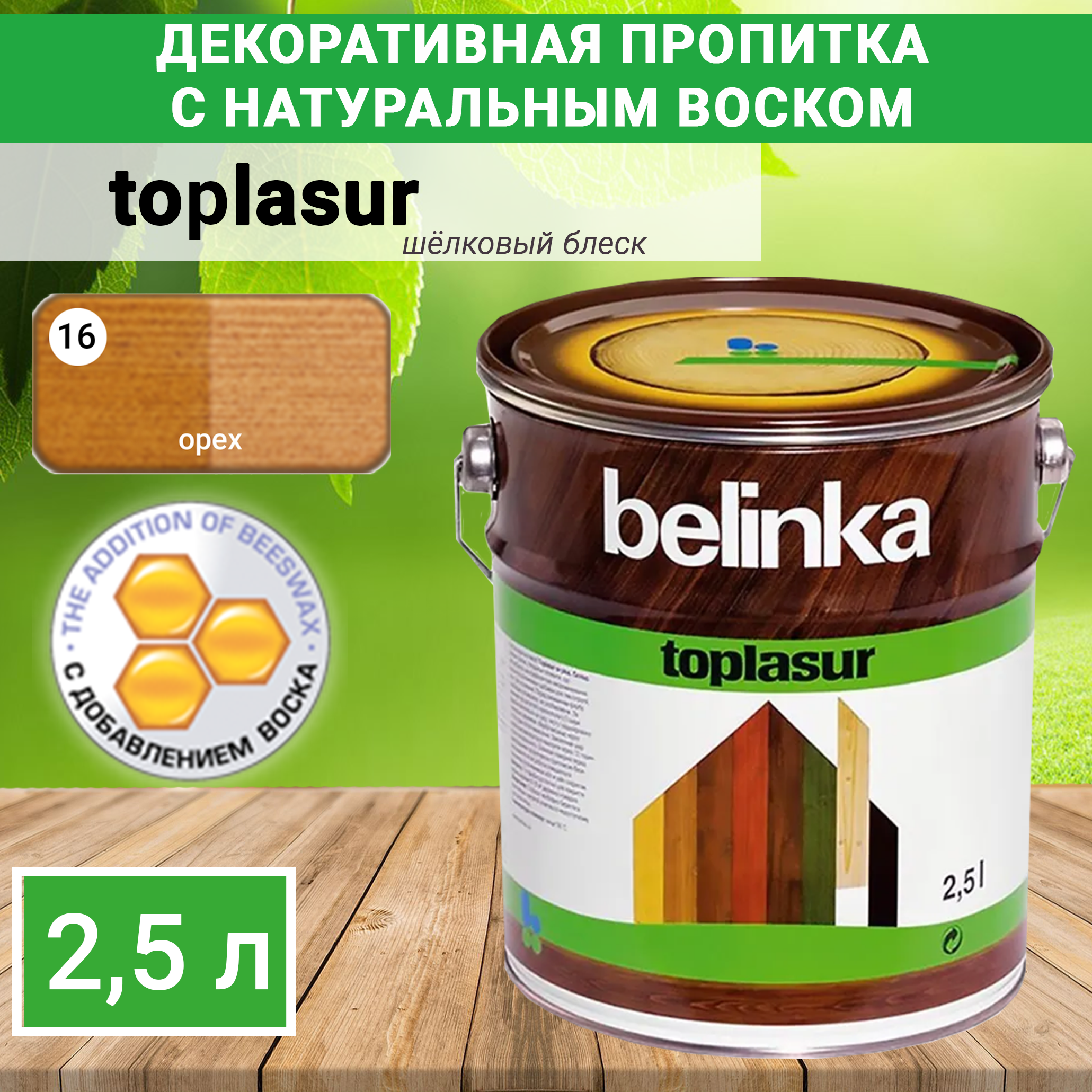 10 цен на Belinka TOPLASUR Лазурное покрытие для защиты древесины (№16 орех, 2,5 л)