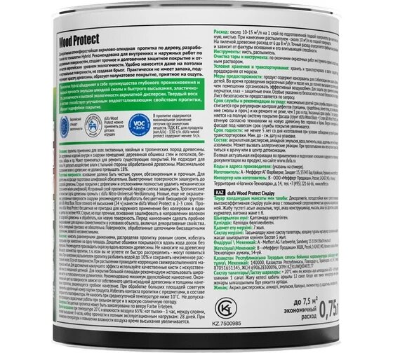 Dufa пропитка Wood Protect, 0.75 кг, 0.75 л, белый