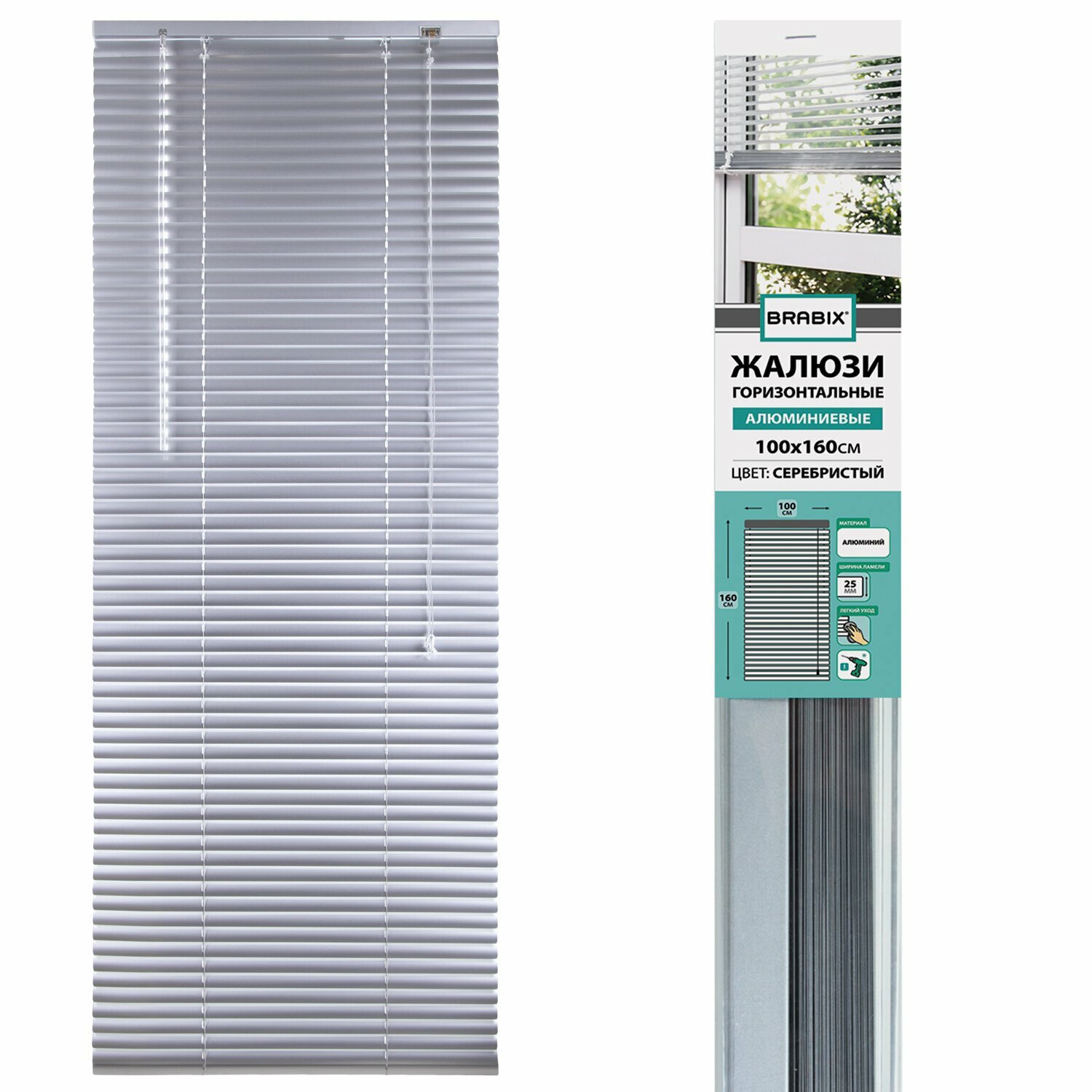 Жалюзи горизонтальные BRABIX 160х160 см, алюминий, цвет серебристый, 606047