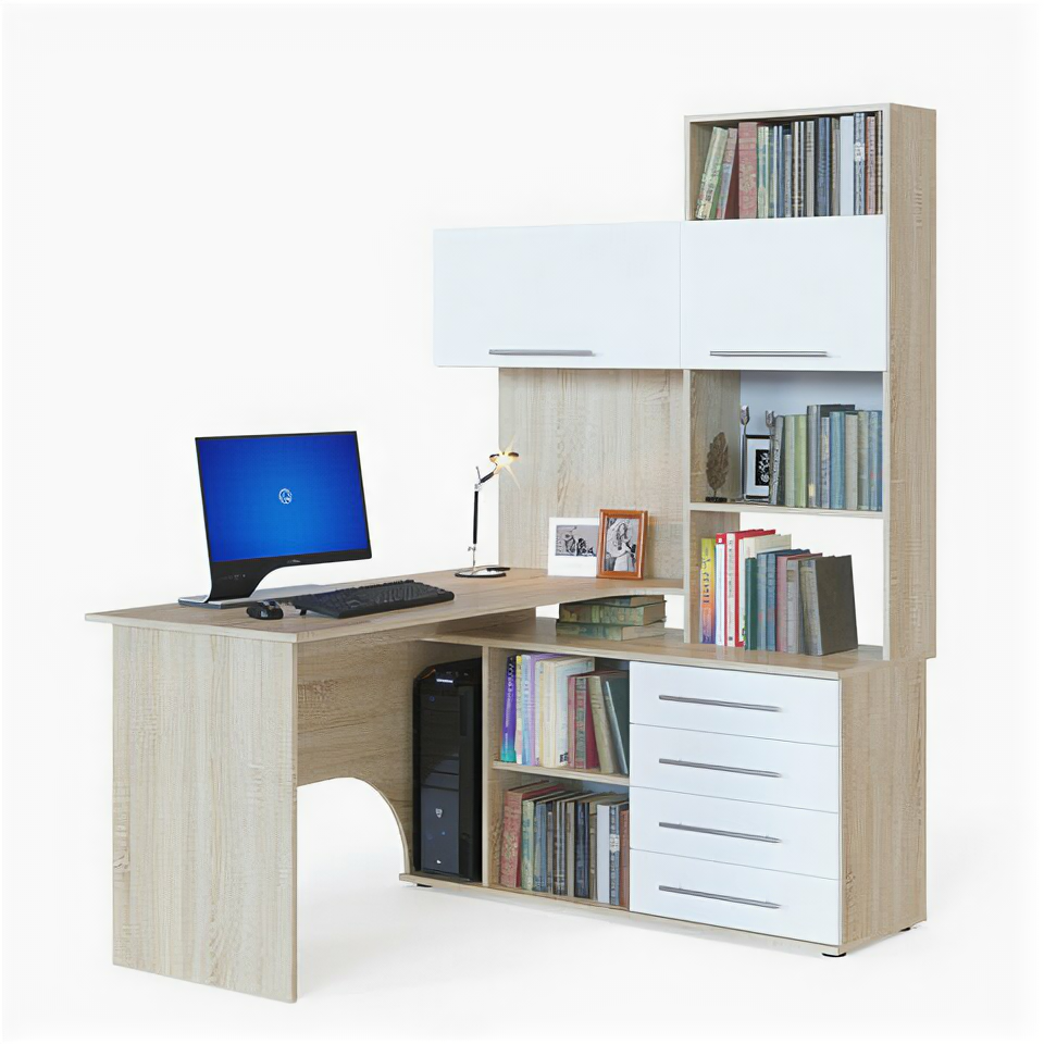 10 цен на Угловой компьютерный стол с тумбой и надстройкой КСТ-14П правый дуб сонома/белый