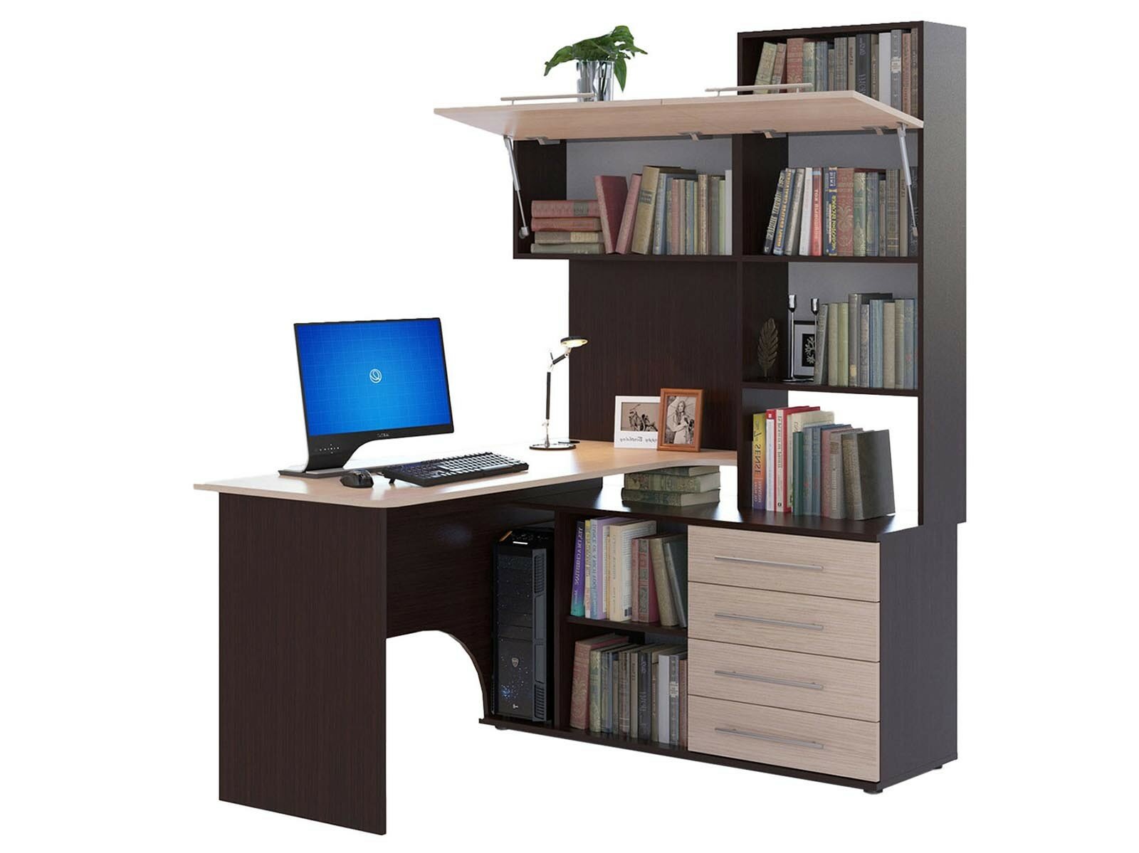 Стол компьютерный КСТ-14Л левый, цвет венге/белёный дуб, ШхГхВ 140х124х183 см., выдвижные ящики слева, стол с тумбой и надстройкой
