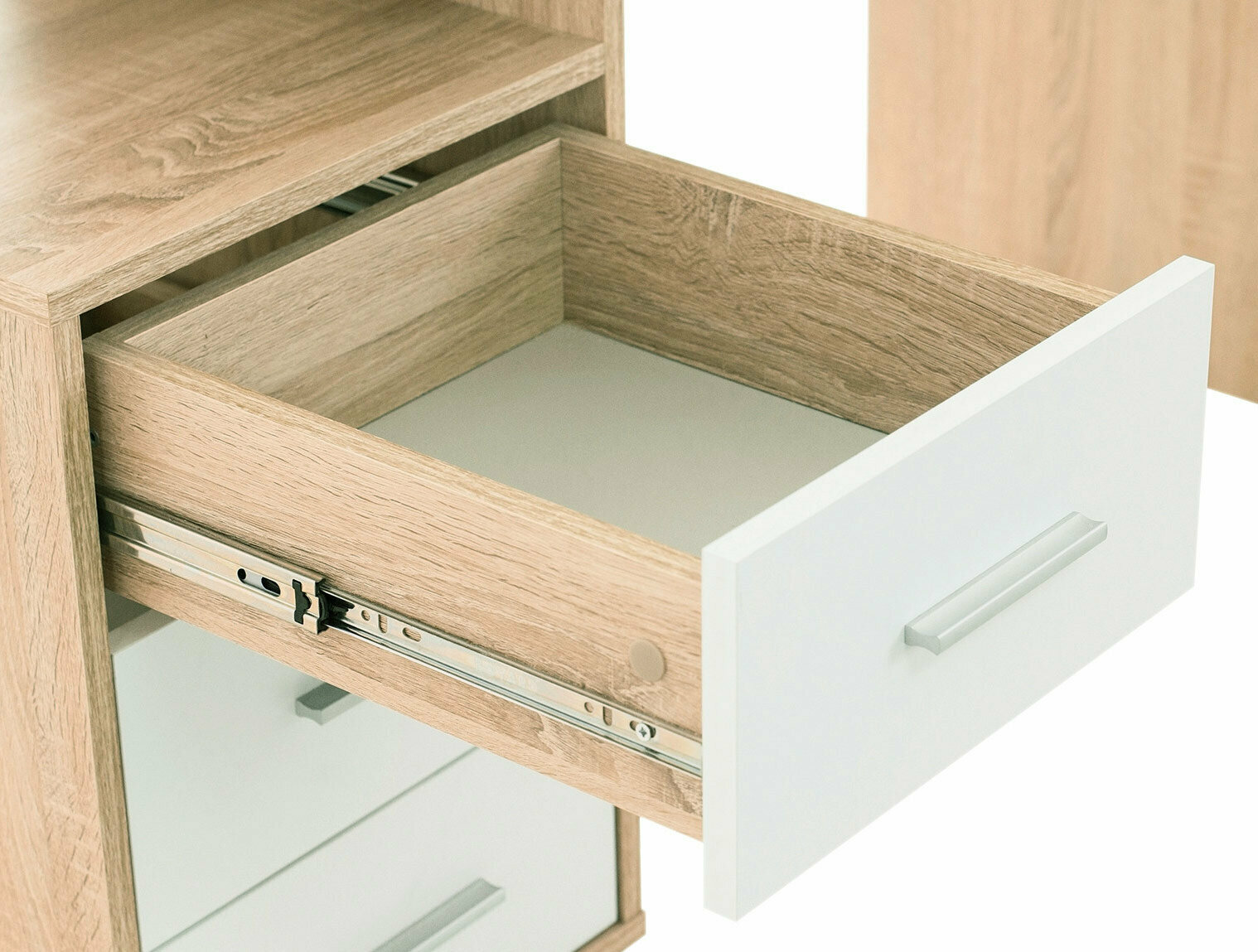 Компьютерный, письменный стол Альфа с ящиками, 106х50.4х76 см, Дуб Крафт золотой / Белый матовый