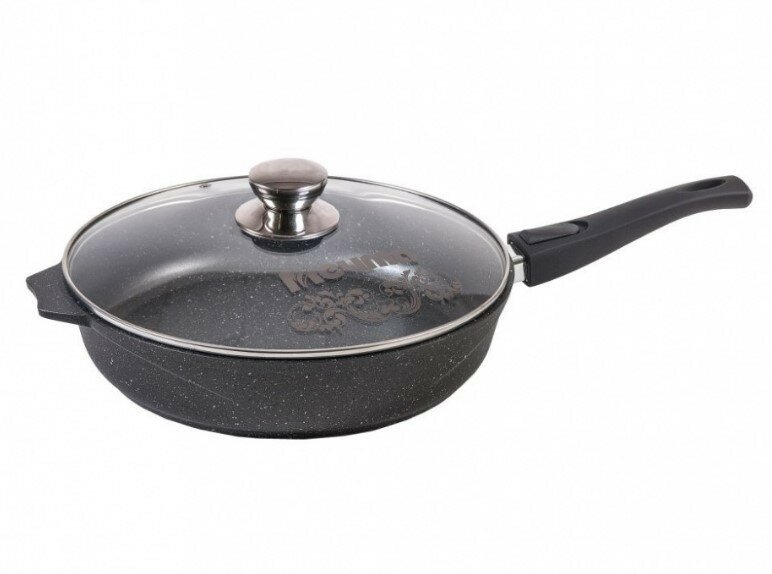 Сковорода Мечта Гранит Black литая с антипригарным покрытием, съемная ручка, стеклянная крышка, 28см