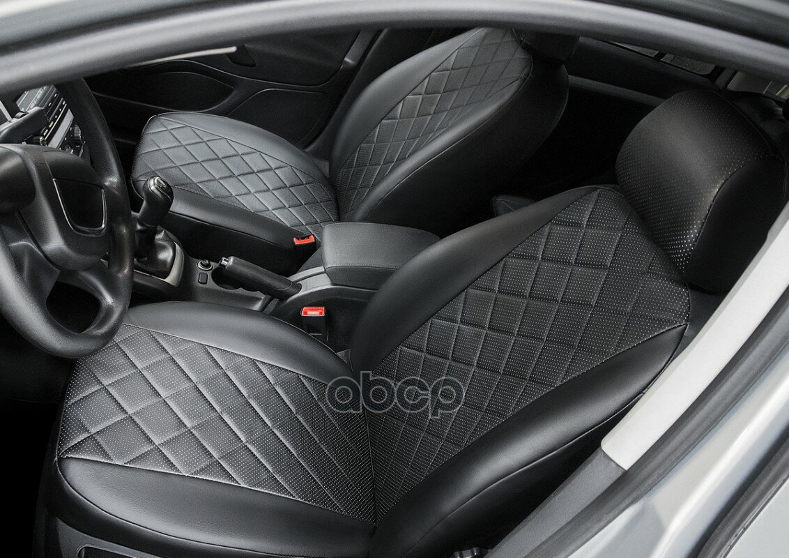 Авточехлы Rival Ромб (спинка цельная) для сидений Datsun on-DO седан 2014-н.в./Lada Granta седан, лифтбек (кроме Drive Active) 2011-2018 2018-н.в., эко-кожа, черные, SC.6005.2