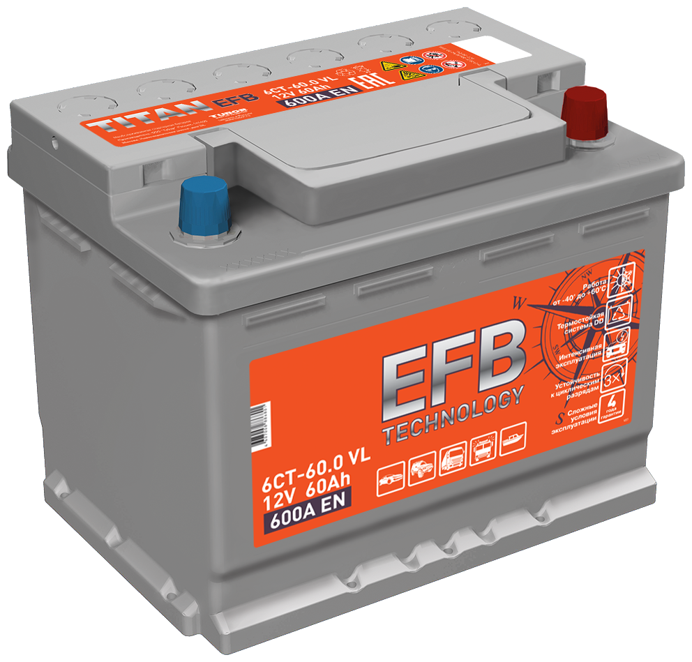 Тубор Аккумулятор TITAN EFB 6СТ-60.0 VL, обратная полярность информация: