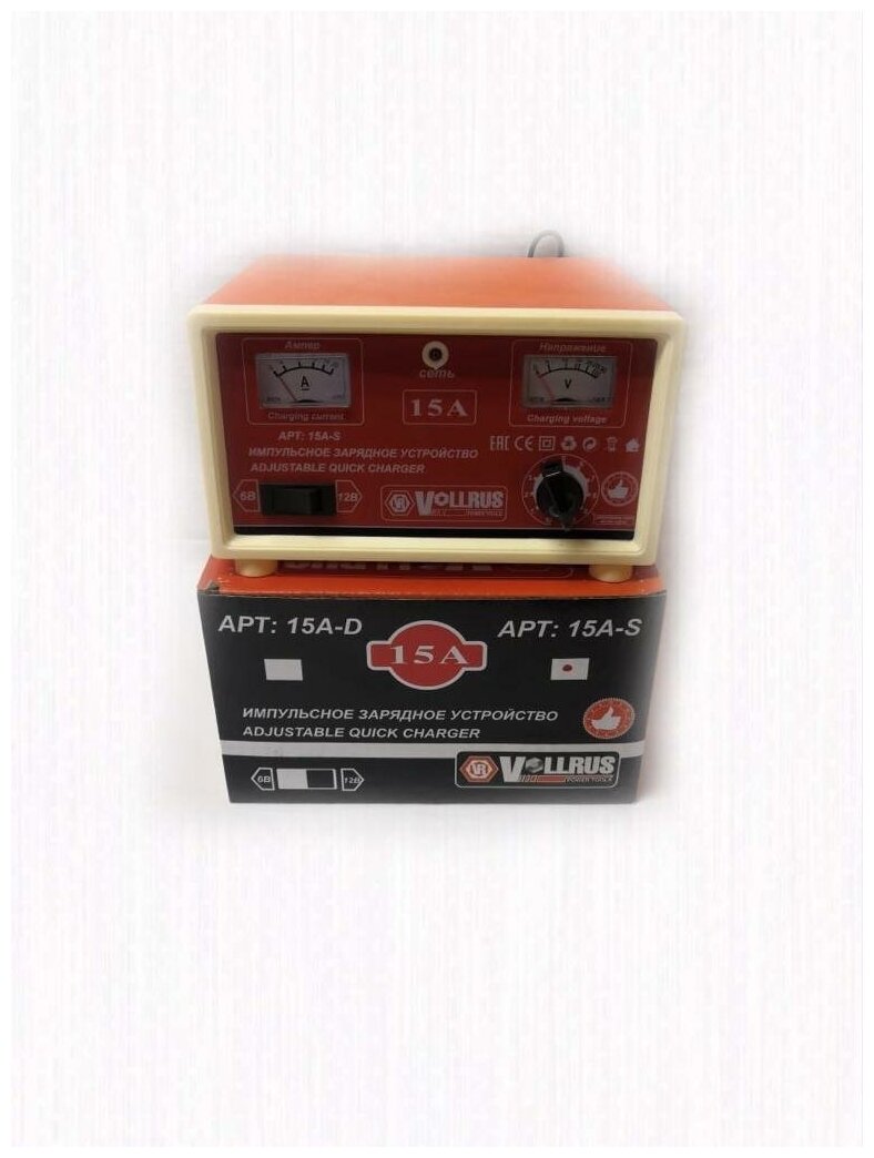 Зарядное устройство для автомобильного аккумулятора VOLLRUS ART-15AS информация: