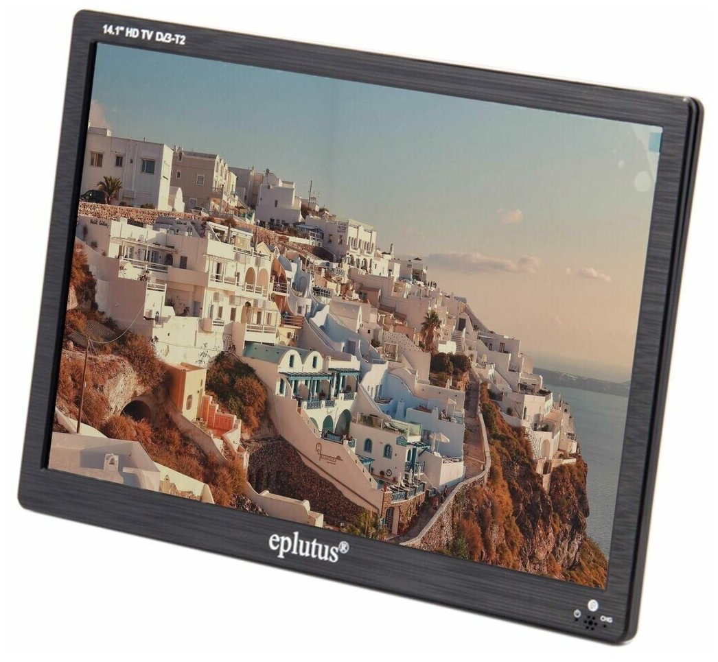 Телевизор Эплутус 143(Т)-EP (E2370EU) с TFT ЖК 14.1-дюймовым экраном и встроенным цифровым тюнером Т2 и аккумулятором 1500 мАч. Воспроизведение с USB