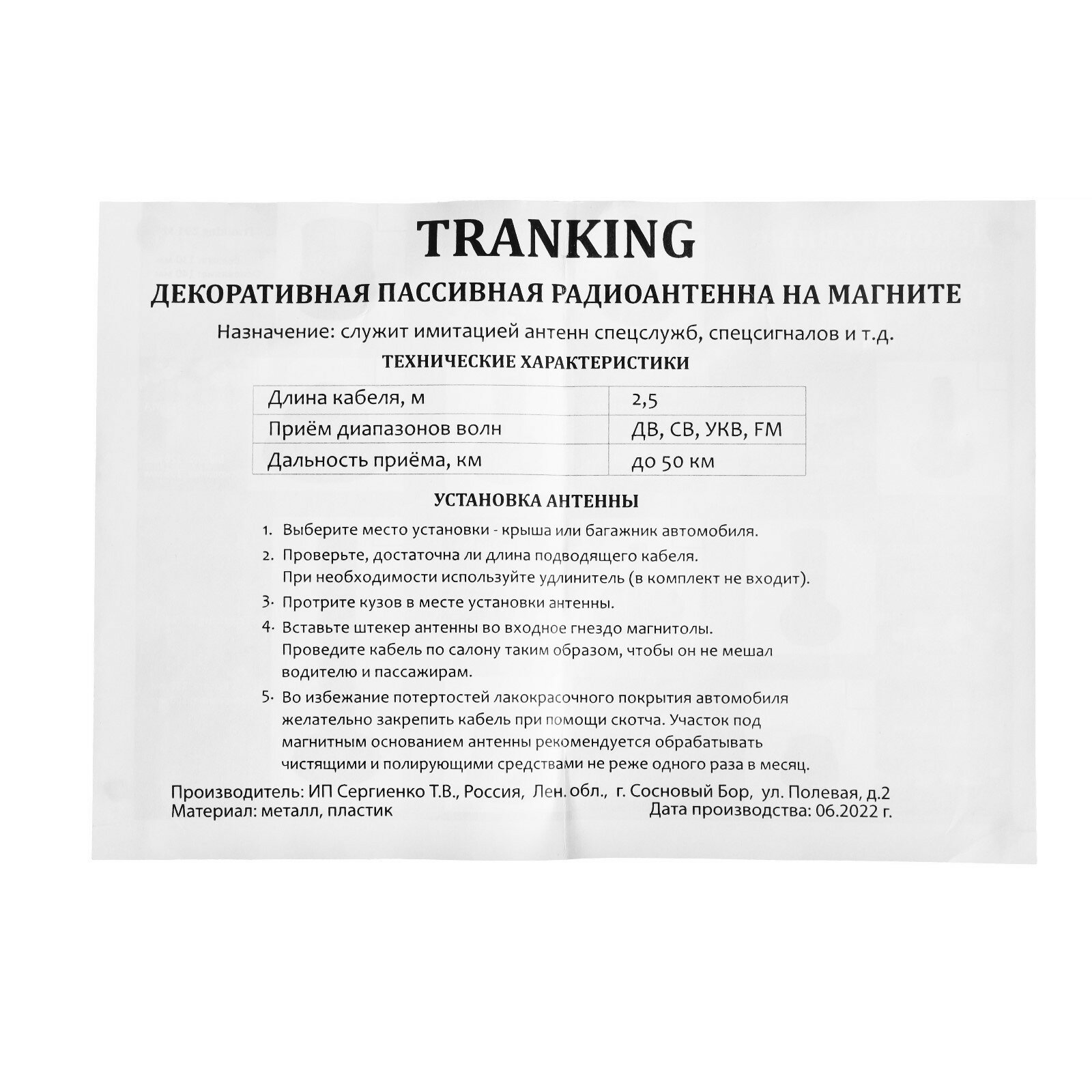 Отзывы на Антенна автомобильная "TRANKING 275" магнитная, УКВ, FM, ДВ, СВ, 2,5 м, пассивная