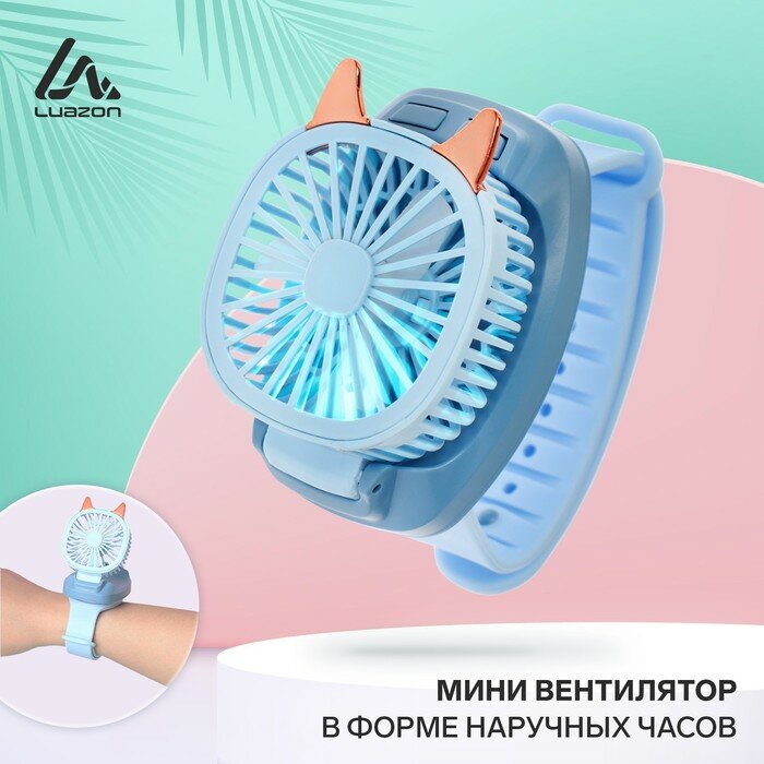 Мини вентилятор в форме наручных часов LOF-09, 3 скорости, подсветка, голубой./В упаковке шт: 1 информация: