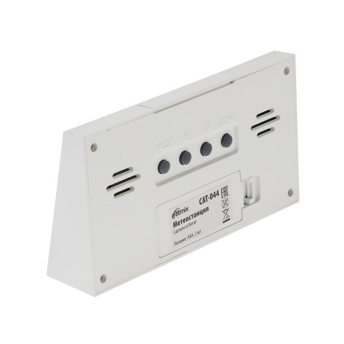 RITMIX Метеостанция RITMIX CAT-044, комнатная, термометр, гигрометр, будильник, 2хААА, белая информация: