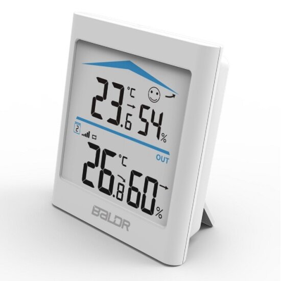 Термогигрометр цифровой с внешним датчиком Baldr B0135T2H2, белый информация: