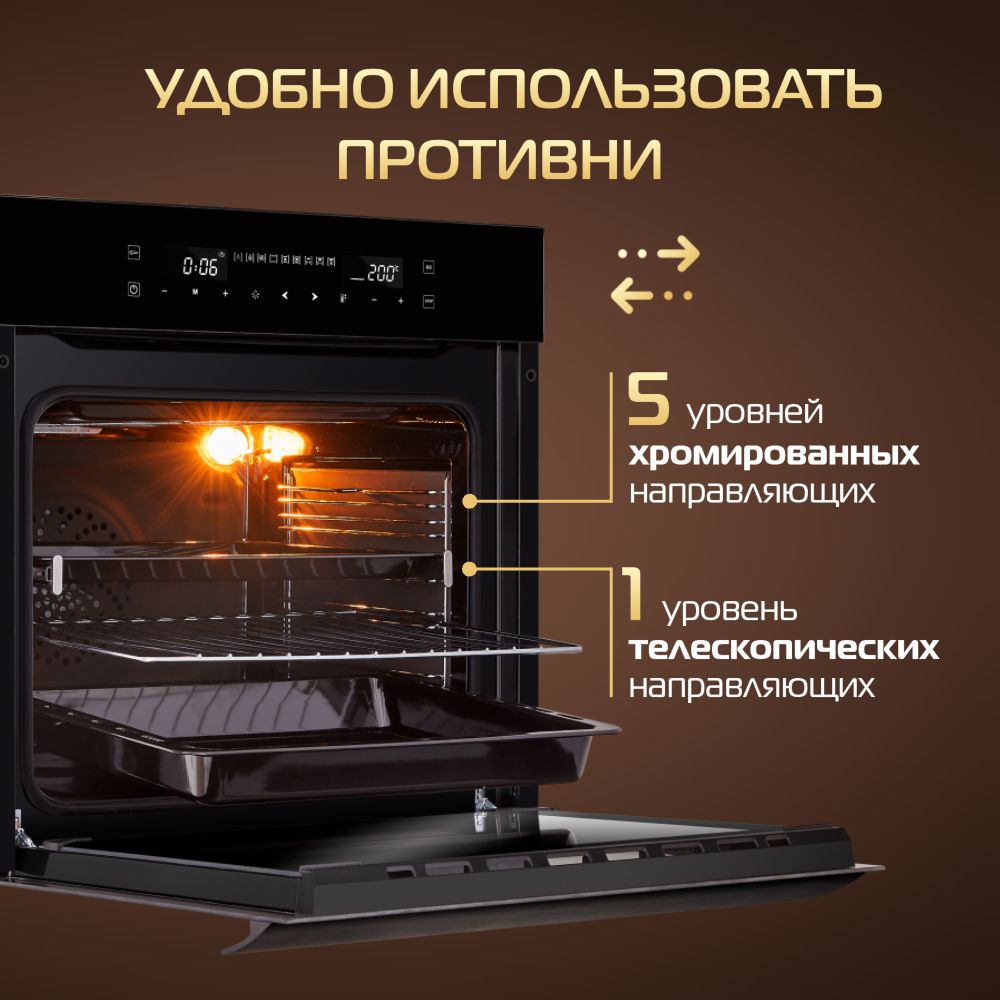 Духовой шкаф встраиваемый LEX EDM 077 C IV, 60 см, с конвекцией, механические ручки, объем 60 л, аналоговый таймер, телескопические направляющие.