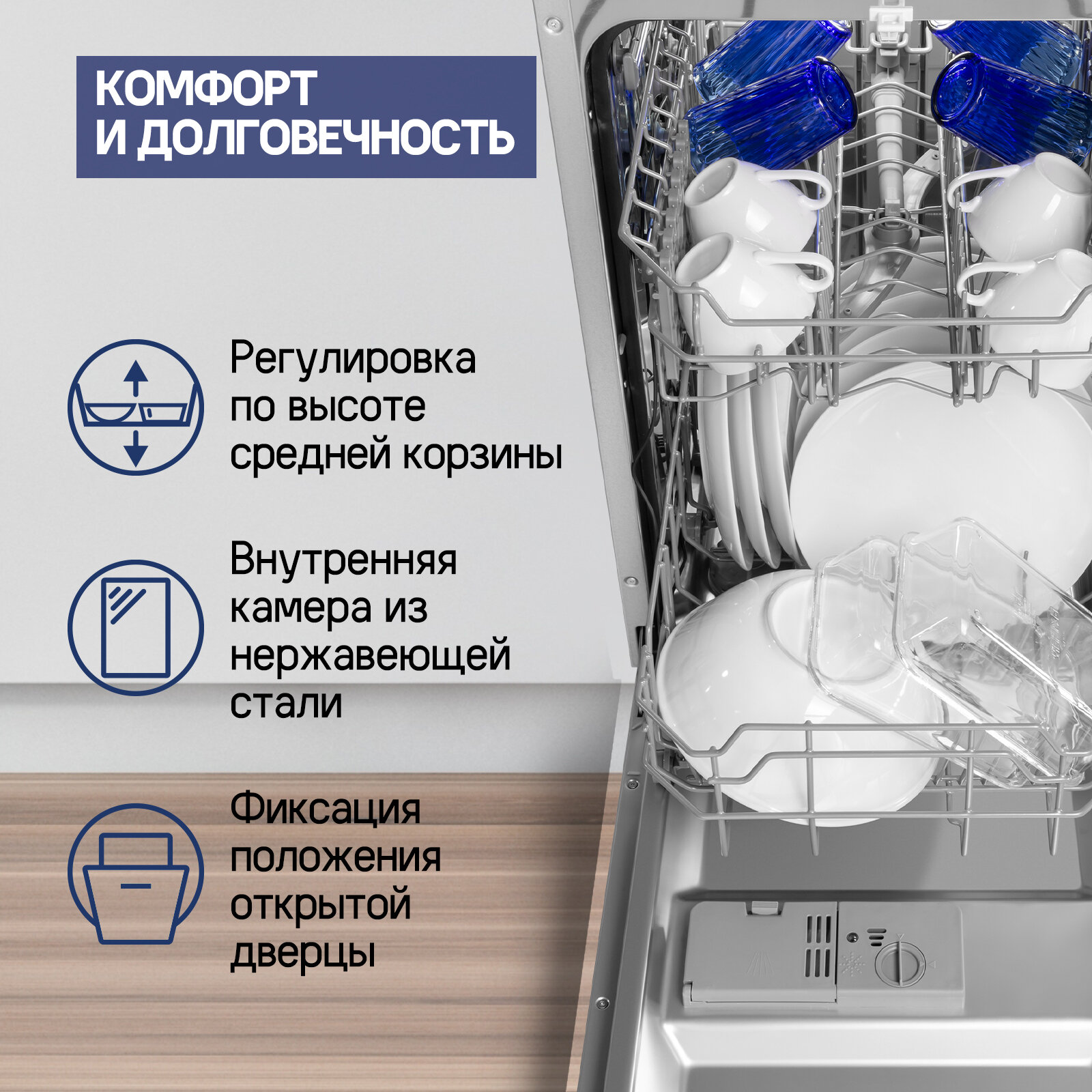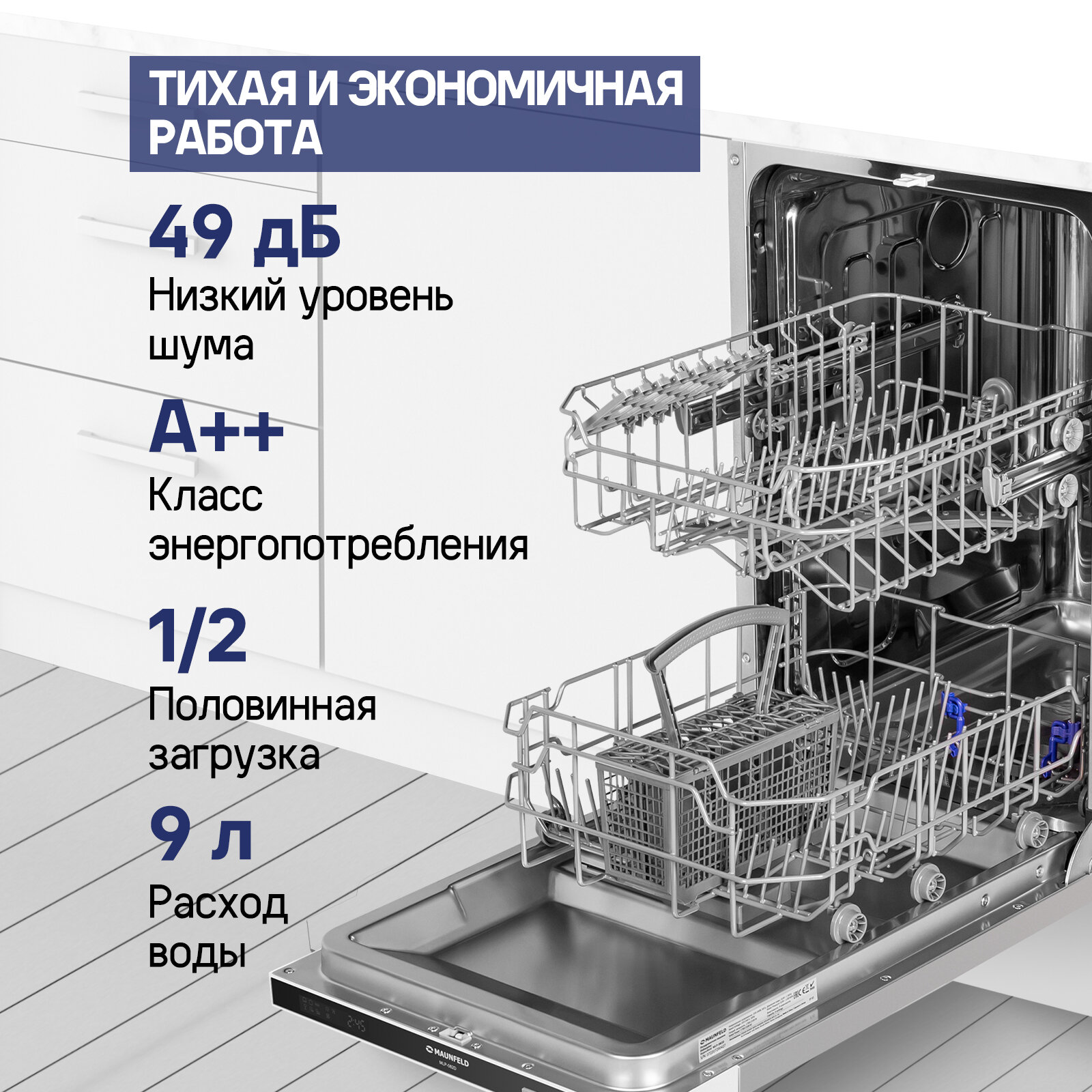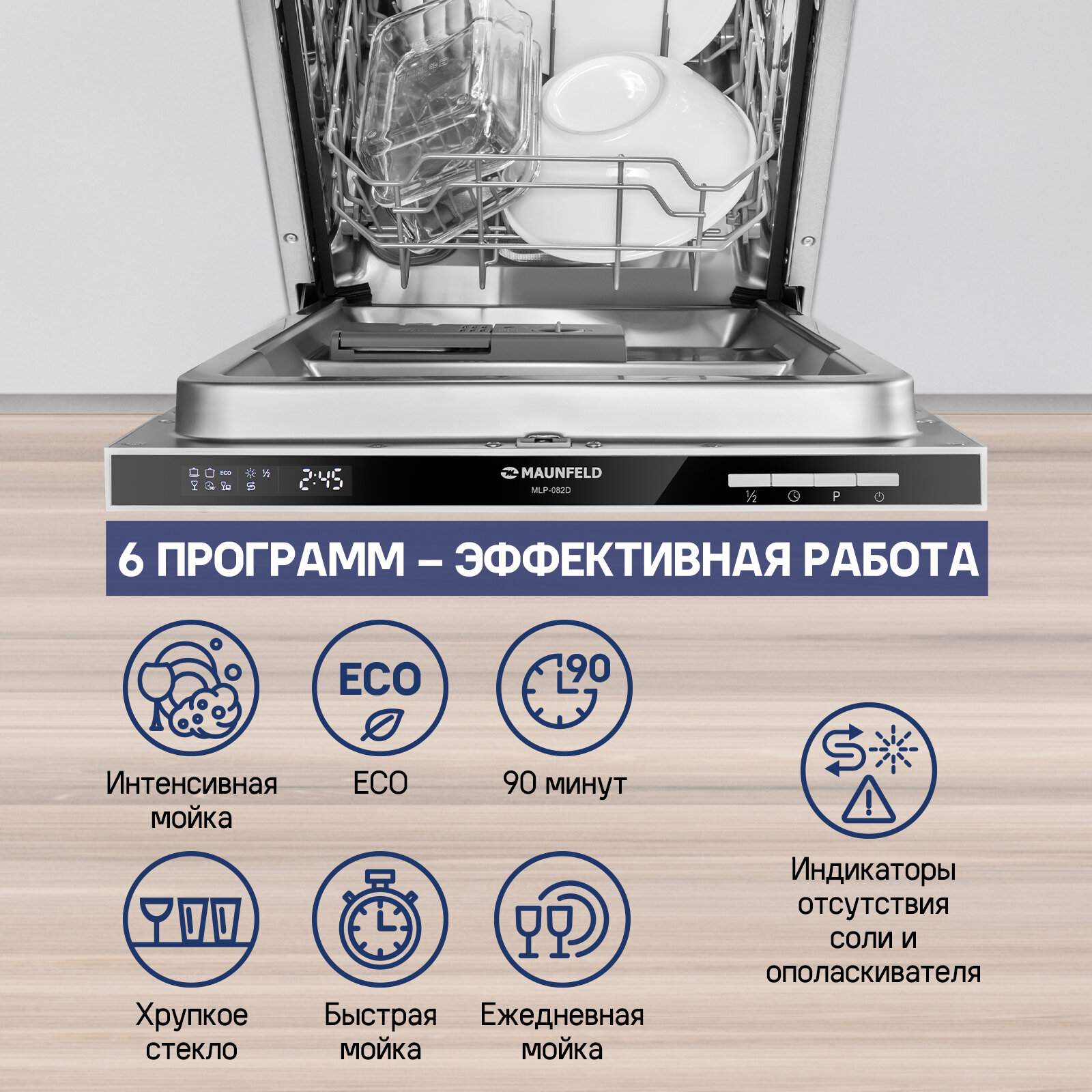 Встраиваемая посудомоечная машина MAUNFELD MLP-082D, узкая, ширина 44.8см, полновстраиваемая, загрузка 9 комплектов